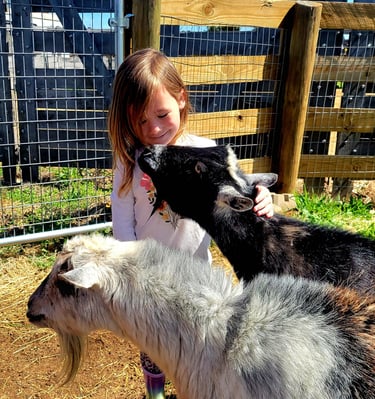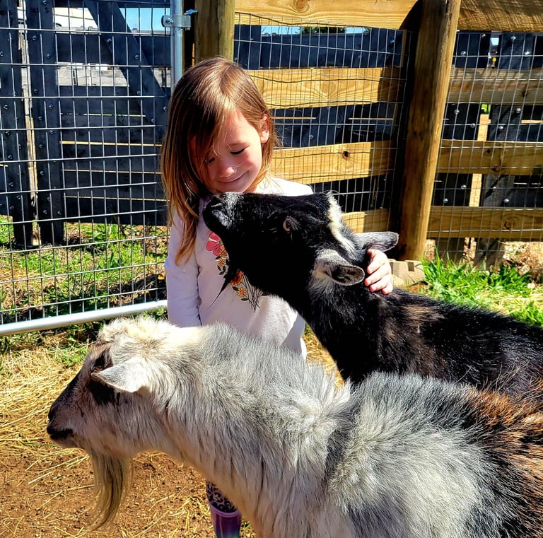 Moments of connection and calm with our horses, and our two pet goats Sherlock and Watson.